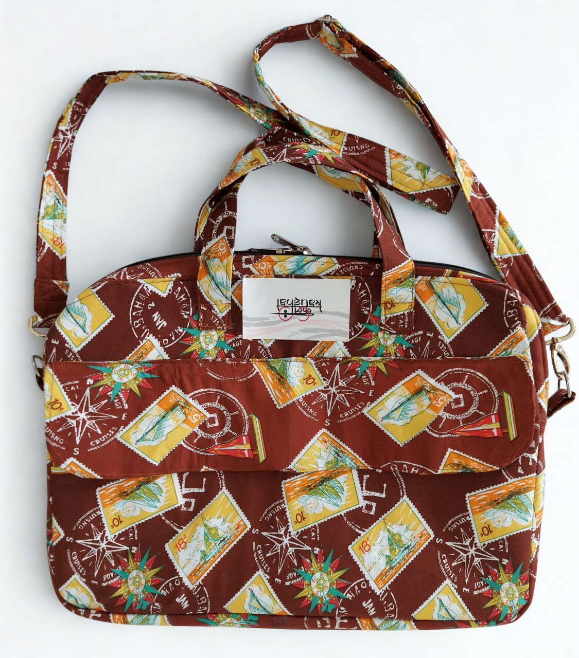 Fuel your love for travel, even on your daily commute, with the Wanderlust Tech Tote. This unique laptop bag features a charming vintage print of postage stamps and travel motifs on a rich brown cotton background. It’s a perfect accessory for globetrotters and dreamers. The 14x9x2 inch case is well-equipped to protect your laptop with an interior partition, while the dual handle options provide comfort and versatility for all your journeys, near and far.
